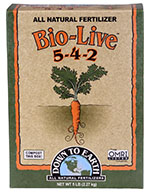 A premium Organic fertilizer mix made from fish bone meal, fish meal, shrimp meal, crab meal, alfalfa meal, langbeinite & kelp meal. We've added this product to all our production for years, and now it's available in a 5 lb. box! Bio-Live possesses a unique mix of beneficial mycorrhizal fungi & beneficial bacteria that stimulates rooting, vigor and optimum plant development. We highly recommend using this especially at plant-out.