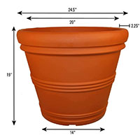 This classic planter is made of very durable yet lightweight terra cotta colored plastic, and is perfect for our "5-gallon Tall" Blueberries!